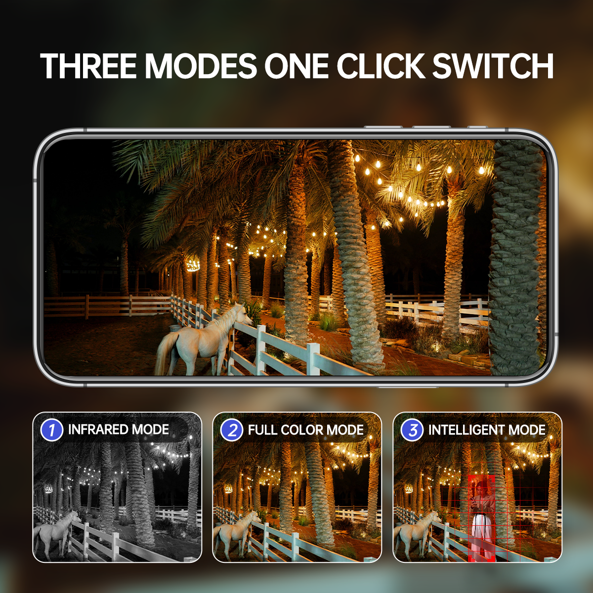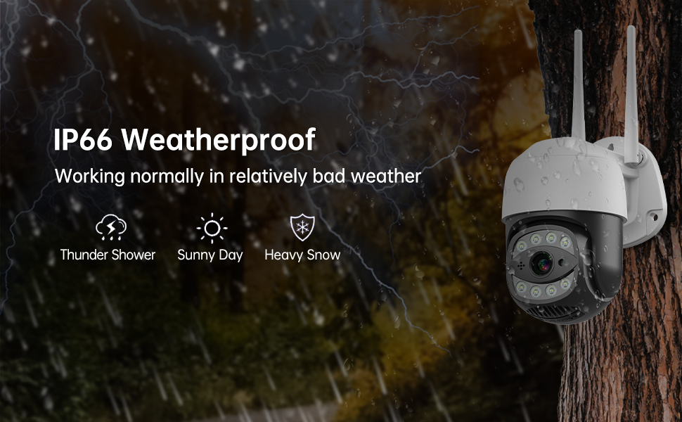 - Floodlight and Sound Alarm: This security camera will be activated when the moment human motion is detected. It then automatically turns on the mini flood light, alarms the security siren, records the scene and sends alerts to your smartphone.